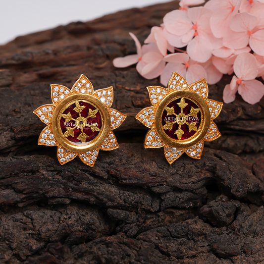 Stone Drop Thewa Art Earrings - A Regal Symphony of Elegance