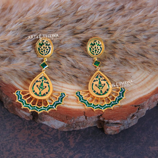 Peacock enamel Thewa art earrings