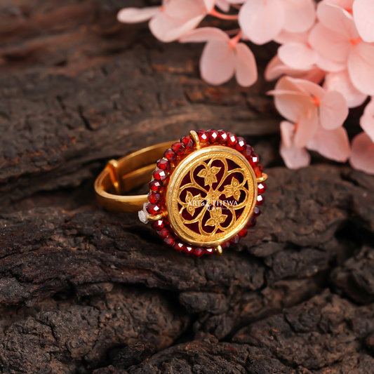Floret Small Garnet Thewa Art Ring - A Handcrafted Regal Masterpiece in 23 Carat Gold