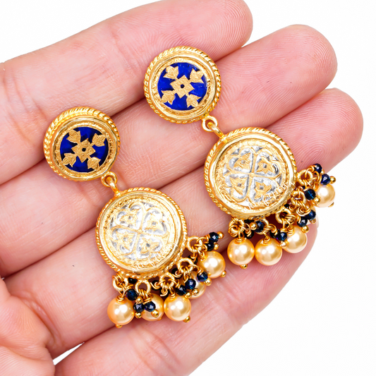 Blue Bianco Thewa Art Latkan Earrings - An Expression of Heritage Royalty