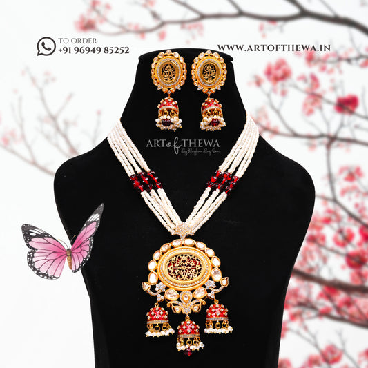 Regal Alekhya Thewa Art Necklace Set with Jhumki - A Majestic Statement of Opulence