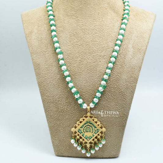 Elegance of Royalty - The Peacock Tessel Art of Thewa Necklace Set