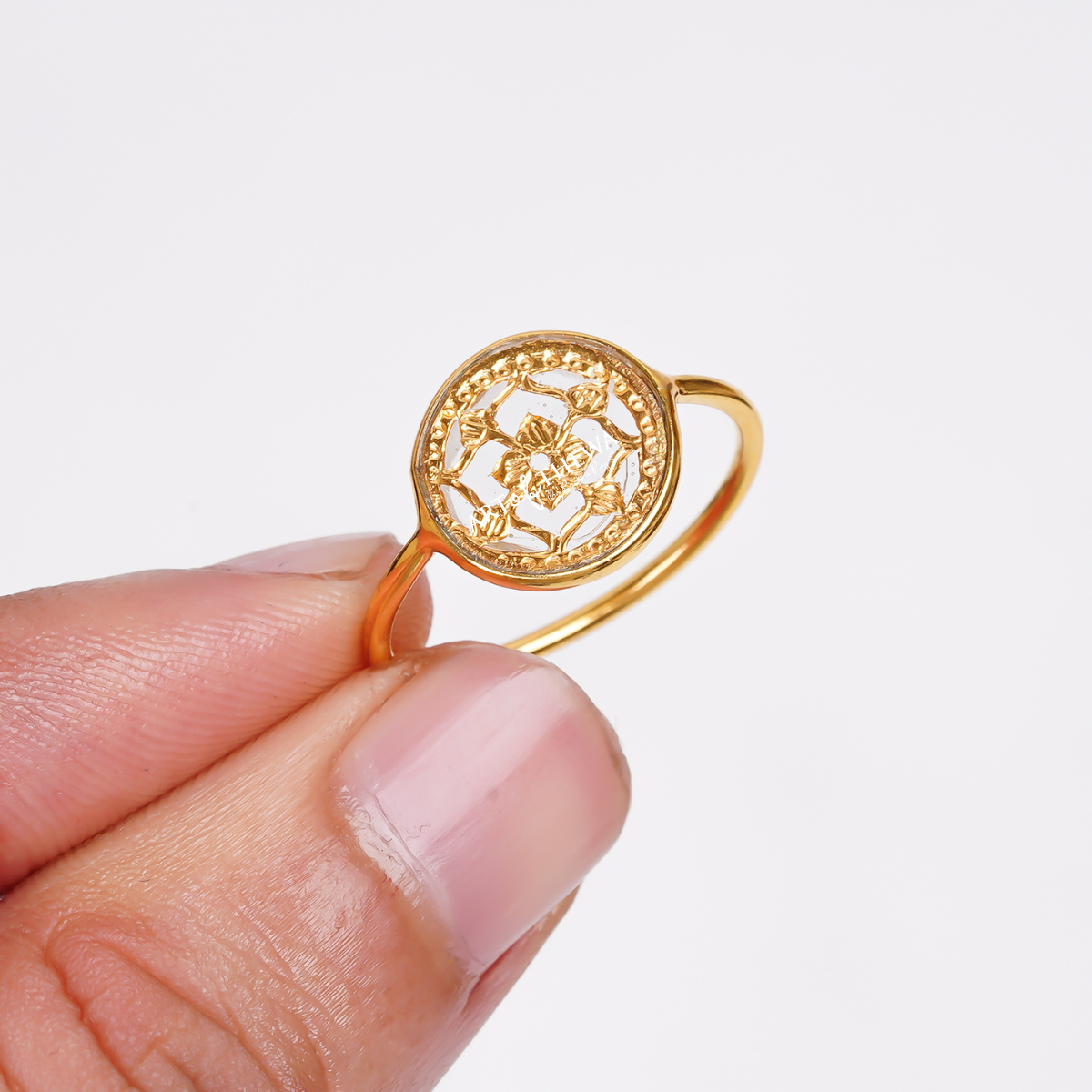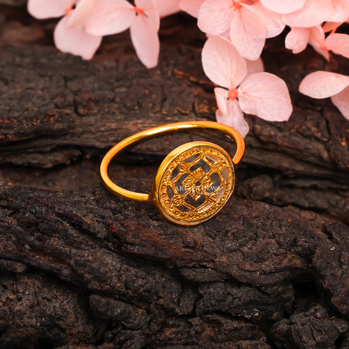 The Exquisite Ajisai Thewa Art Ring handcrafted using the ancient Indian Thewa jewelry technique, crafted by Raghav Rajsoni , 6th Generation Artist in Rajsoni Thewa art family.