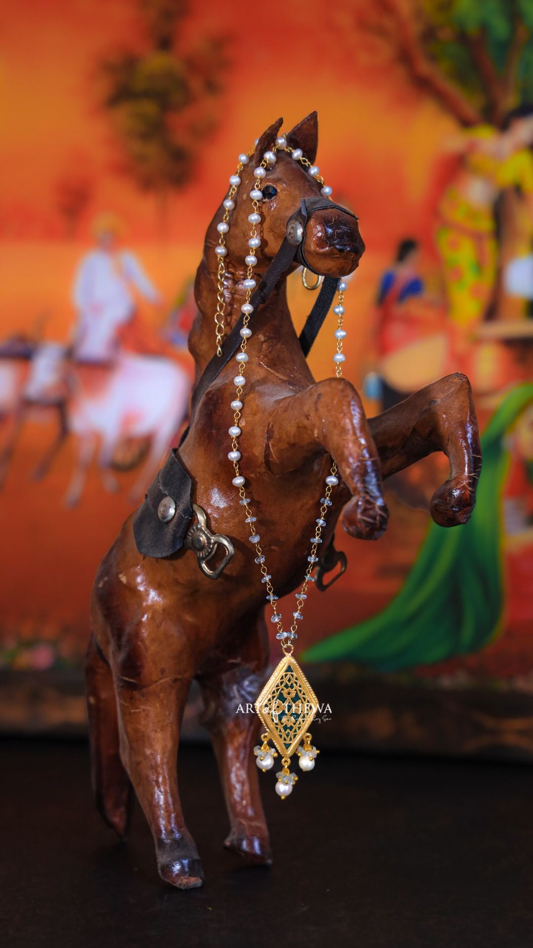 1) The "Art of Thewa Diamond Daisy Pendant" epitomizes elegance and sophistication with its intricate design and dazzling embellishments. The diamond-shaped pendant, adorned with delicate white moti and sparkling white stones, exudes timeless beauty and grace.