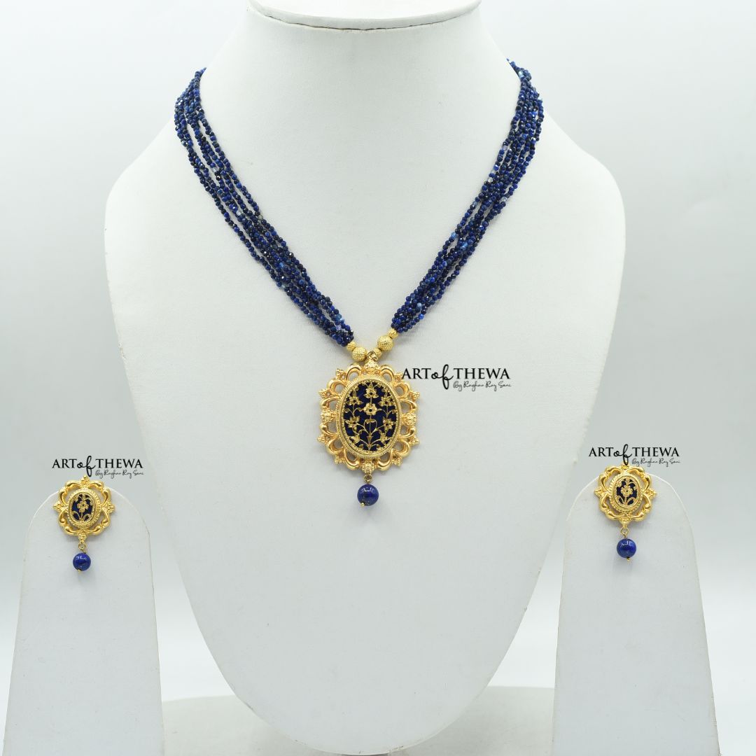Bhavin Royal Blue Art of Thewa Pendant Set – Unveil Elegance and Opulence,Beyond its aesthetic appeal, the set carries a deeper symbolism of opulence. Core Attributes:-