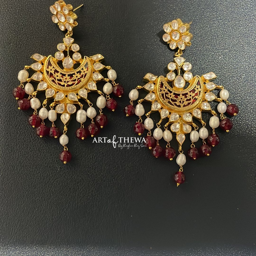 1- Thewa Art jewelllery :- Each earring features 23kt gold work meticulously crafted on glass, a unique art form recognized by the Government of India as a GI tagged product.