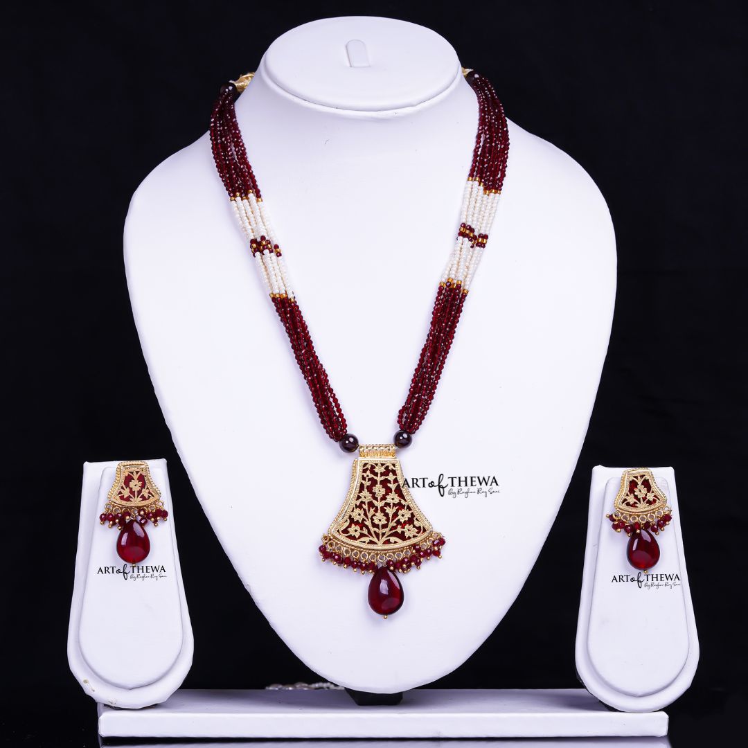 Experience elegance with our captivating "Art of thewa Farsa Pendant Set," adorned with a tear drop pearl hanging delicately at the pendant's end.