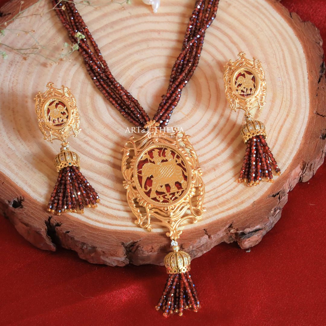 Regal Elephant Thewa art Designer Necklace set