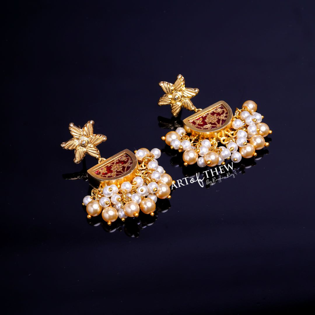 Star Pearl Thewa Earrings – A Celestial Fusion of Pearls and Floral Splendor
