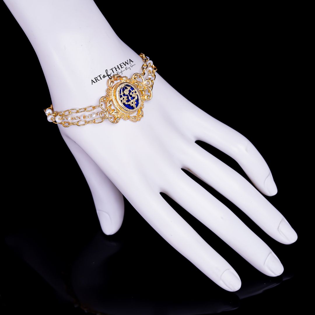 Thewa Art Floral Chain Bracelet – Crafted in Art work of Fusing 23kt Gold and coloured glass with Tradition and Style, Embrace the exquisite craftmanship by Artisan Raghav Rajsoni
